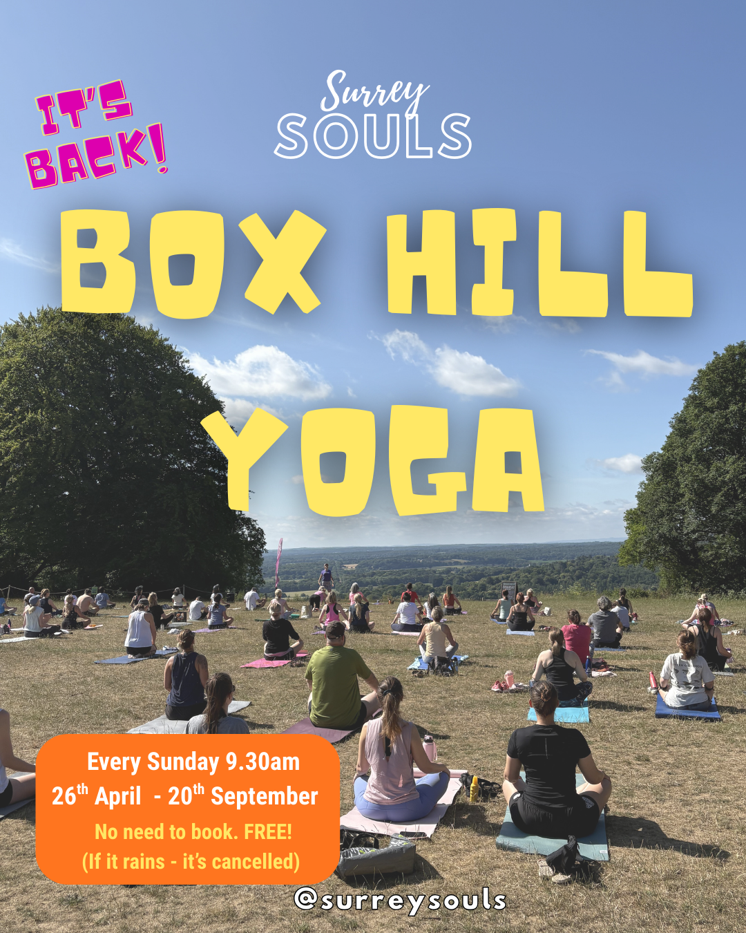 The National Trust 〰️ Box Hill Yoga 〰️ every Sunday 9.30-10.30am 〰️ rain = cancelled 〰️ Free (donations welcome)
